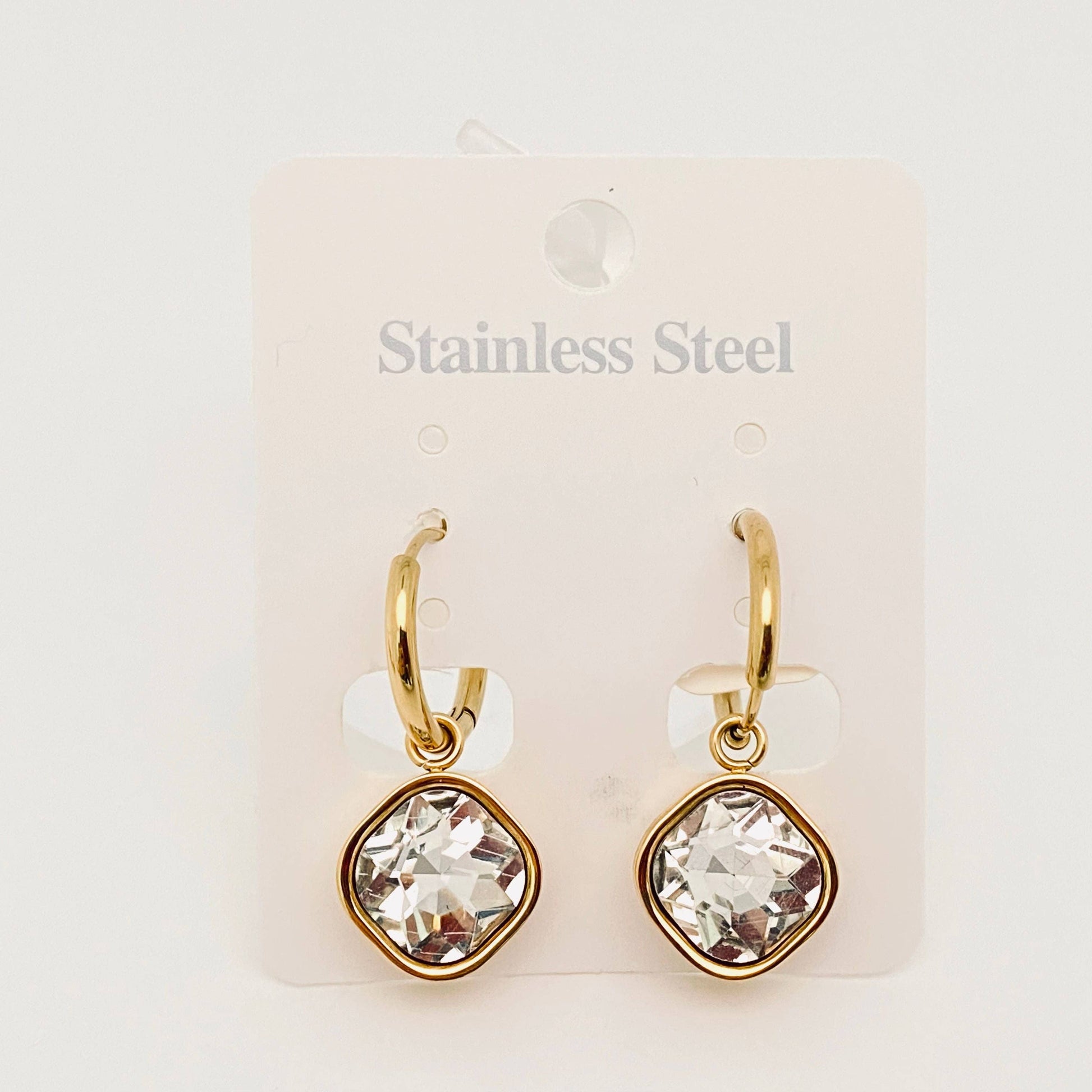 18K Gold-plated Stainless Steel Pendant Earrings: White
