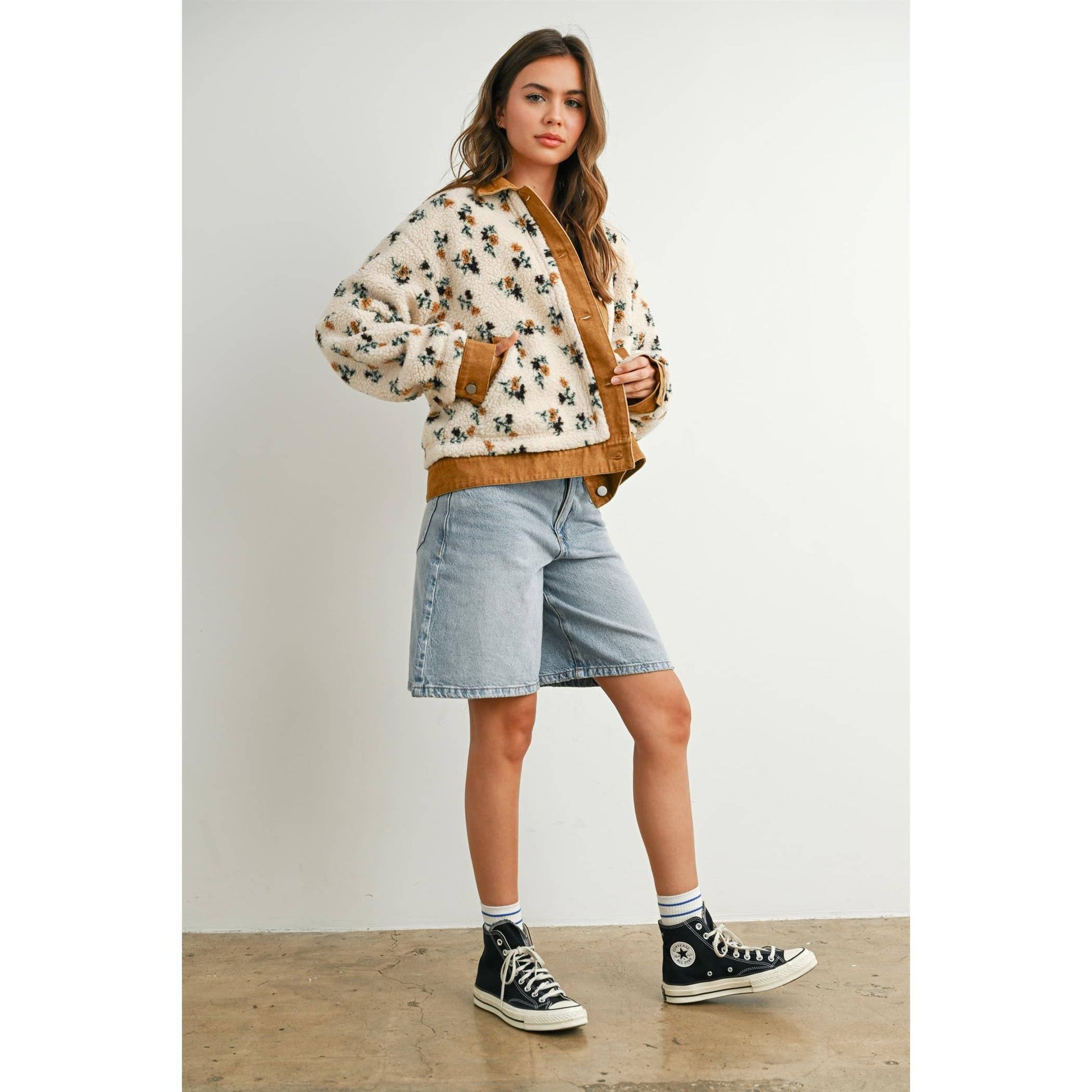 Add a touch of charm to your outerwear with this floral collared button-down jacket. Featuring a classic collar, front button closure, and an allover floral print, it blends structure with femininity. Perfect for layering over casual or dressy looks, this jacket offers both style and comfort.