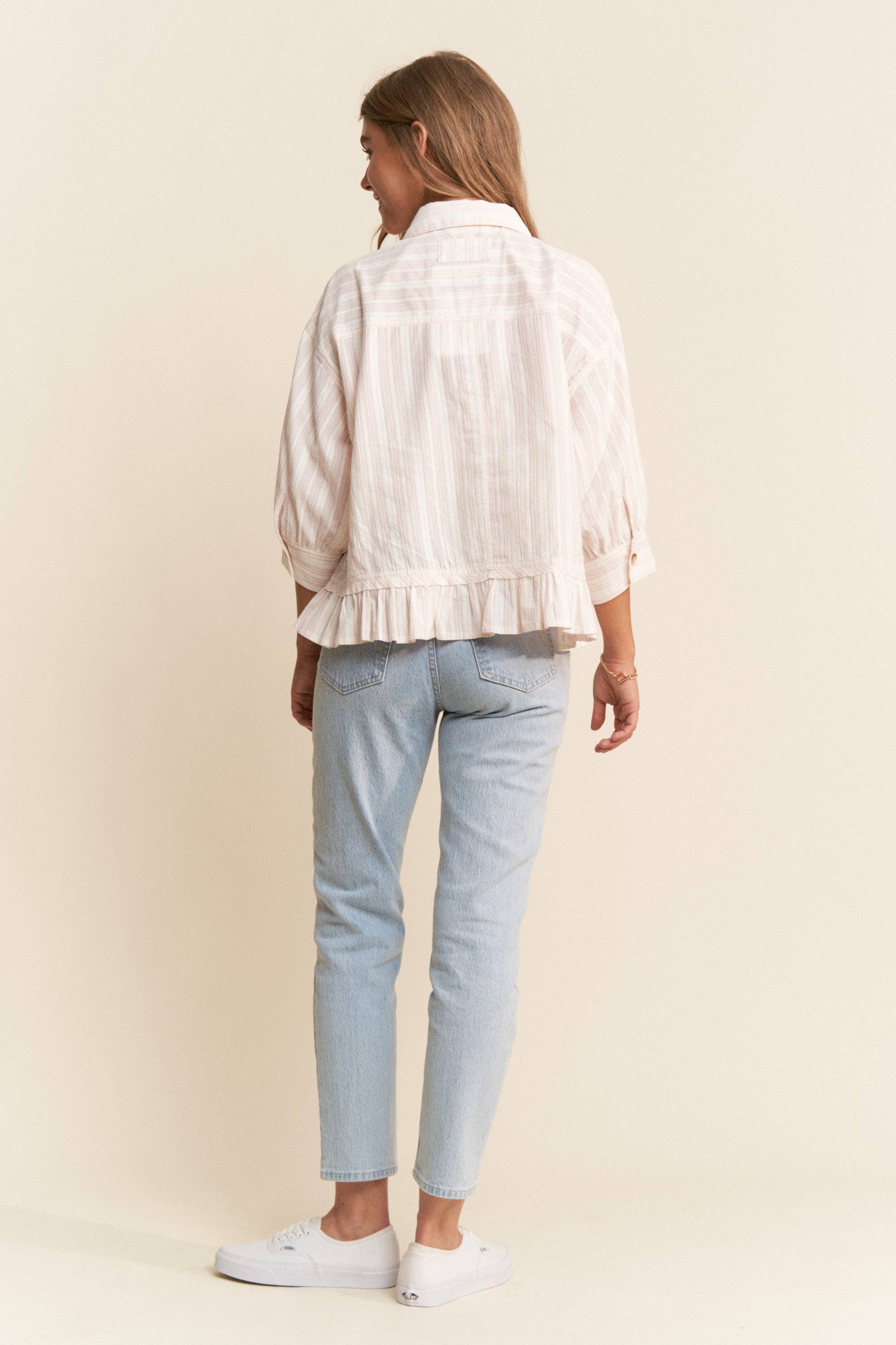 Stripe Jacquard Button Up Pleated Top: Light Pink